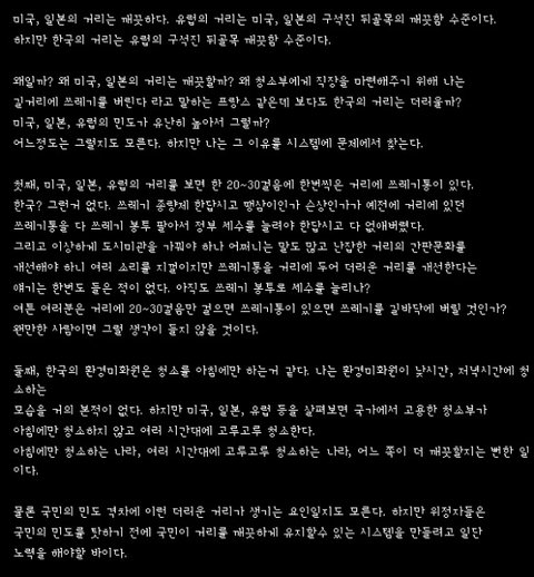 바로 '거리의 청결상태' 입니다. 제가 말하는 '거리의 청결상태'는 단순히 쓰레기처리만을 말하는게 아니라