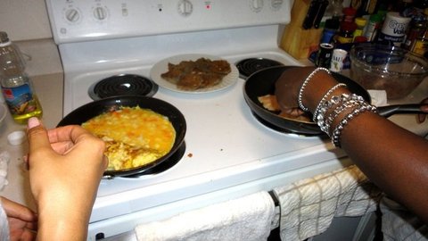 처음 할 때는 후라이팬 바닥이 많이 긁혀있어서 계란들이 계속 후라이팬과 찰싹 붙어있었지만,