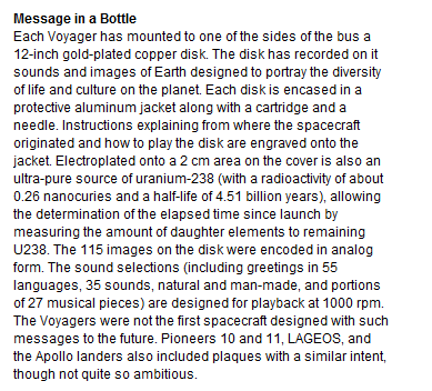 이렇게 모은 자료는 칼세이건은 NASA에 전달했고 그건 금으로 도금해 만든 12인치 레코트판에