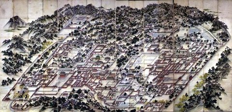 원래의 경복궁의 모습으로 지금의 빈 터나 잔디는 찾아볼수 없고 아름답고 거대한 모습이다
