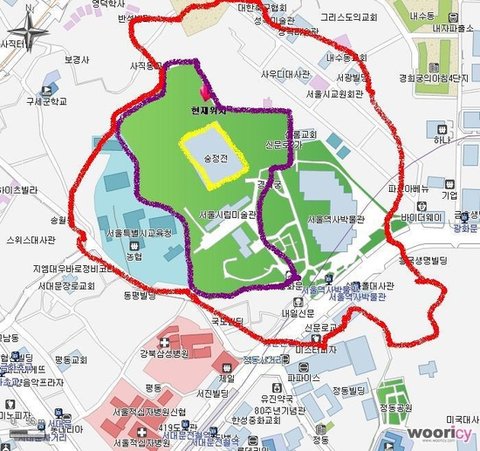 상당구역이 현재 다른 건물이 있거나 길이 나 있다는 것을 알 수 있다.