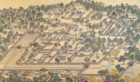 창덕궁과 창경궁을 나타낸 동궐도이다. 왼쪽이 창덕궁, 오른쪽이 창경궁을 나타낸다.