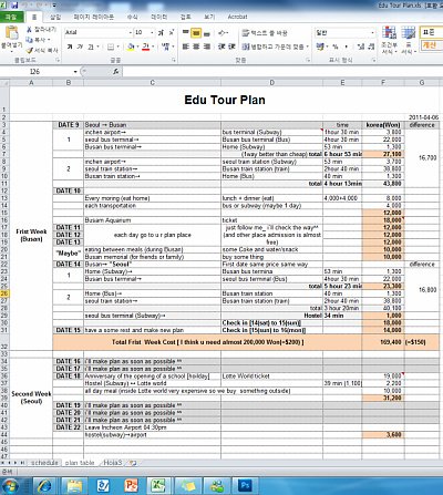 난 큰맘먹고 이녀석에게 한국이 이런곳이라는 사명감으로!!!+ㅁ+ 미친듯이 계획을 세움;;