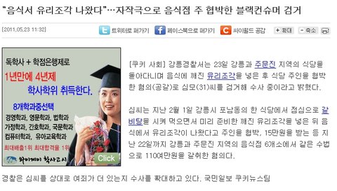 넷째, 강모씨측이 피해자 입장치고는 너무나 순차적으로 일을 진행시키는 점도 놀랐습니다. 제가 먼저 합의금이란 명분을 제시하지않자, 공격적인 말 이후론 북구청 위생과에 넣은 민원건과 시민의 소리란 곳에서 기자가 유리나온 업소냐면서 기사화하기위한 전화가 왔었고, 충분히 입장을 알려드렸습니다. 건전하게 영업하고 있는 업소하나를 자기들의 마음에 들지않는다고 매도하고 사장시키려는 악의성이 충분함을 알아주시기 바랍니다.