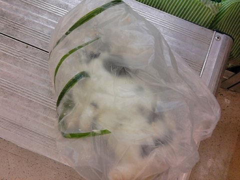 (쓰레기가 들어있는 봉지에 토끼 시체를 담으려니 죽은 토끼에게 미안했습니다.)