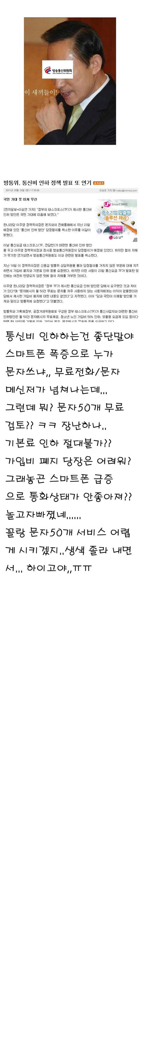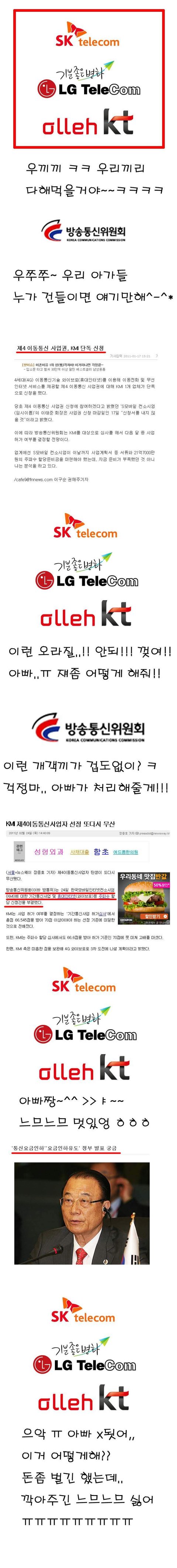 분기마다 1조원씩 벌어쳐먹으면서 망품질 개선이나 요금인하 할 생각은 안하고 카카오톡에 과부하타령