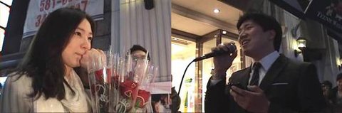 그리고 CGV 전광판 건너편에서 여자친구를 위해 노래를 하기 시작했습니다.