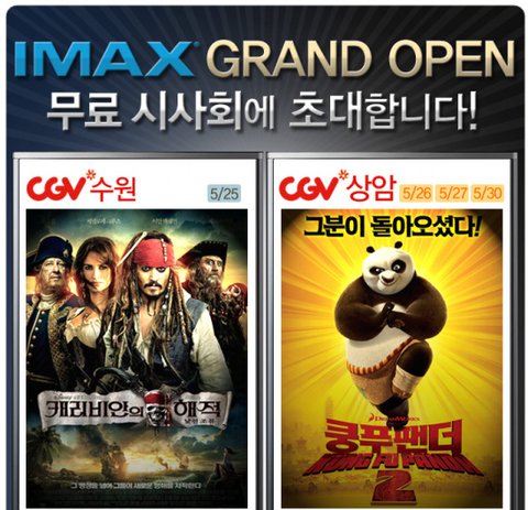 상암 CGV에서 아이맥스관 오픈으로 쿵푸팬더2 3D를 무료로 선착순에게 보여주는것이었어요.