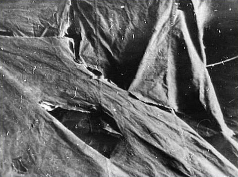 당시 발견된 찢어진 텐트 사진