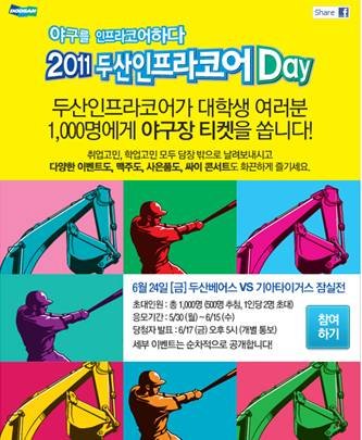 ‘두산인프라코어 DAY’에서 야구경기에 싸이까지 보는 방법!!