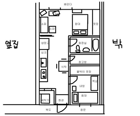 그 집은, 대충 20평 정도의 크기였는데, 무엇보다도 구조가 매우 희한했지.