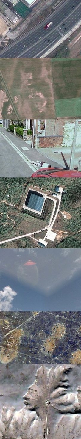 구글의 웹 위성 지도서비스인 구글어스를 통해 국내 지도에서 미스테리 컷(위에서 1번째 사진)이 찍혔다. 이로 인해 그간 구글어스에서 찍힌 미스테리컷이 새삼 화제를 모으고 있다.