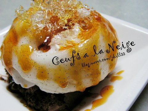 이건 와프 아 라 네주라고, 계란 흰자를 거품 올려서 밑에 크림과 같이 먹는거에요