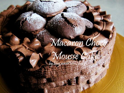 이것도 친구 생일 케익. 초코 무스로 범벅을 한 뒤에 위에 망한 초코 마카롱을 올렸어요.