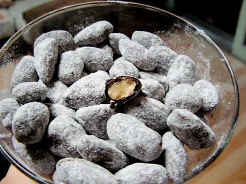 아몬드 위에 카라멜을 씌우고 그 위에 초콜릿을 씌운 뒤 슈가파우더나 코코아 파우더에 굴리는 디저트.