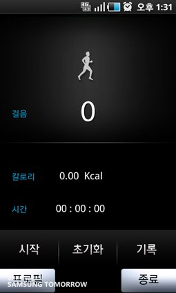 종료를 누르지 않고 메인 화면으로 돌아간 모습입니다. 그냥 스마트폰처럼 쓸 수 있지만, 위의 사진을 보면 ‘달리는 모습’이 나오는 것처럼, 어플은 제 걸음을 꾸준히 인식하고 있다는 사실! 참 똑똑하죠^^