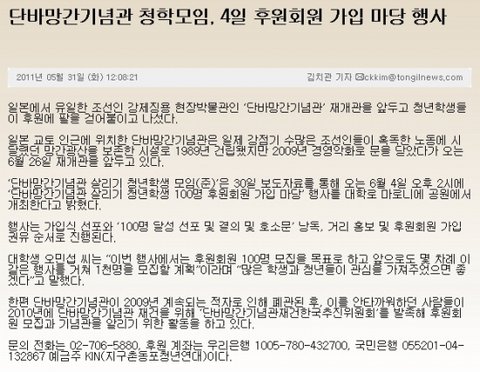 내일(2011/6/4) <단바망간기념관>살리기 청년학생 후원회원 100명가입식이