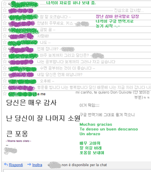 며칠 전에 둘이 주고 받은 구글번역 놀이 메일임다.