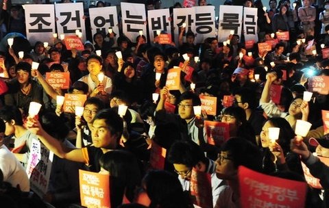 한나라당이 'B학점 이상' '소득 하위 50%'지원이라는 짝퉁 '반값등록금'이 아닌 조건 없는 진짜 '반값등록금'을 요구하는 희망의 촛불을 들고 있습니다.