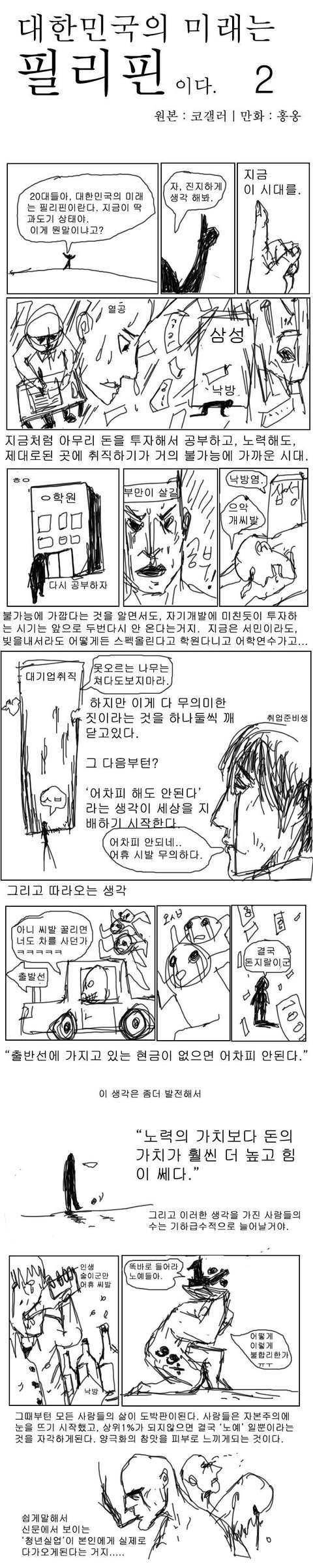 그 능력자중한명이 그린 그림입니다....하찮게 보실수도 있을테도 안볼수도 있겠지만 한번쯤은 보시는것도 지금의 우리상황에서 도움이 되면 도움이 되었지 도움이 안되지는 않을거라 생각됩니다.