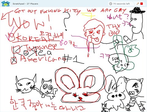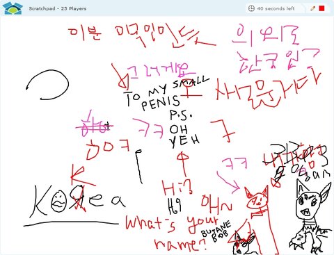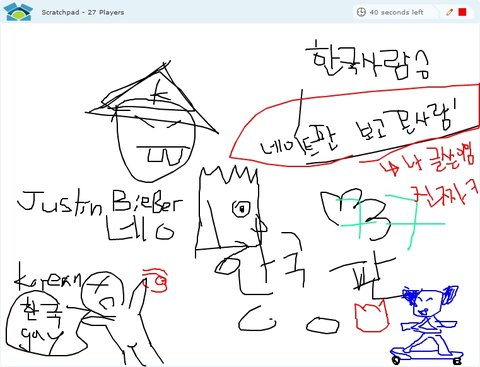 http://www.lunchtimers.com/game/?game=scratchpad&roomid=room1<- 이거 진짜짱ㅋㅋㅋ여기서우리나라사람만나면 왠지모르게친근감을느낌ㅋㅋㅋㅋㅋㅋㅋㅋㅋ