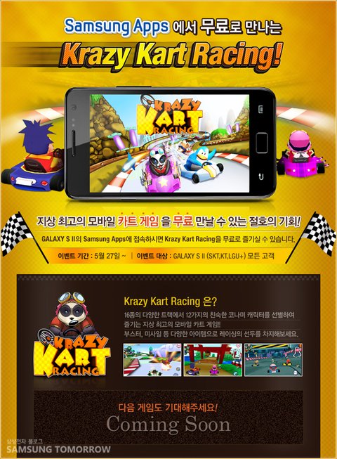 '크레이지 카트 레이싱 앱은 지난 5월 27일부터 계속, 어쌔신스 크리드 앱은 지난 6월 3일부터 선착순으로 삼성앱스에서 무료 제공 되고 있습니다.