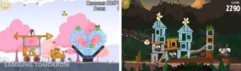 또한 스마트폰 사용자에게 폭발적인 인기를 얻고 있는 앵그리버드도 삼성앱스에서 만날 수 있습니다. 삼성앱스는 국내 최초로 앵그리버드 3종 전 시리즈를 지난 24일부터 무료로 제공하고 있습니다.