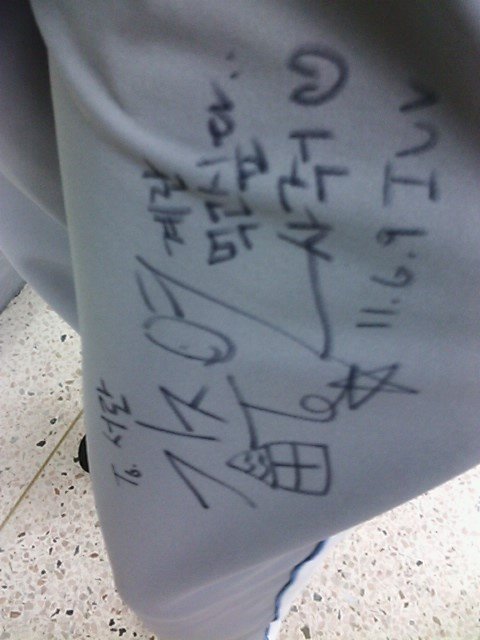 친구들은 체육복 바지(입고)에 싸인받곸ㅋㅋㅋ카라깃에 싸인받고 대박이었슴