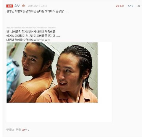 이런 머리를 한 연예인을 보면서 매일 자신이 머리를 기는 꿈을 꾸는거임!!
