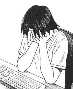 오빠가 컴퓨터앞에 앉음.