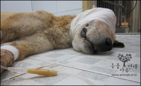 한 쪽 눈만 잃은 것이 아니라 아랫 턱과 눈 아래 뼈가 부러지도록 잔인한 학대를 당하여 심각한 외상후 스트레스 장애를 겪고 있는 찐자에게도 응원을 보내주세요!