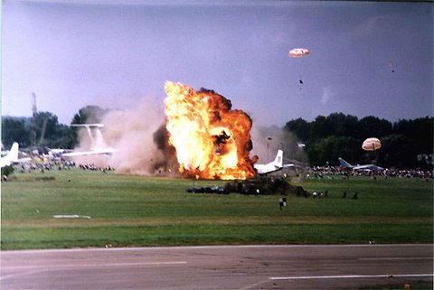 엔진이 꺼진 su-27기는 엄청난 속도로 추락하며 그대로 관중석으로 떨어지게 되지.