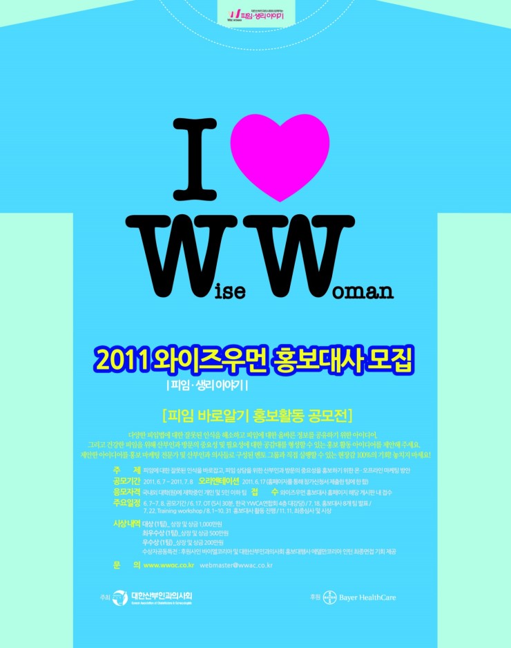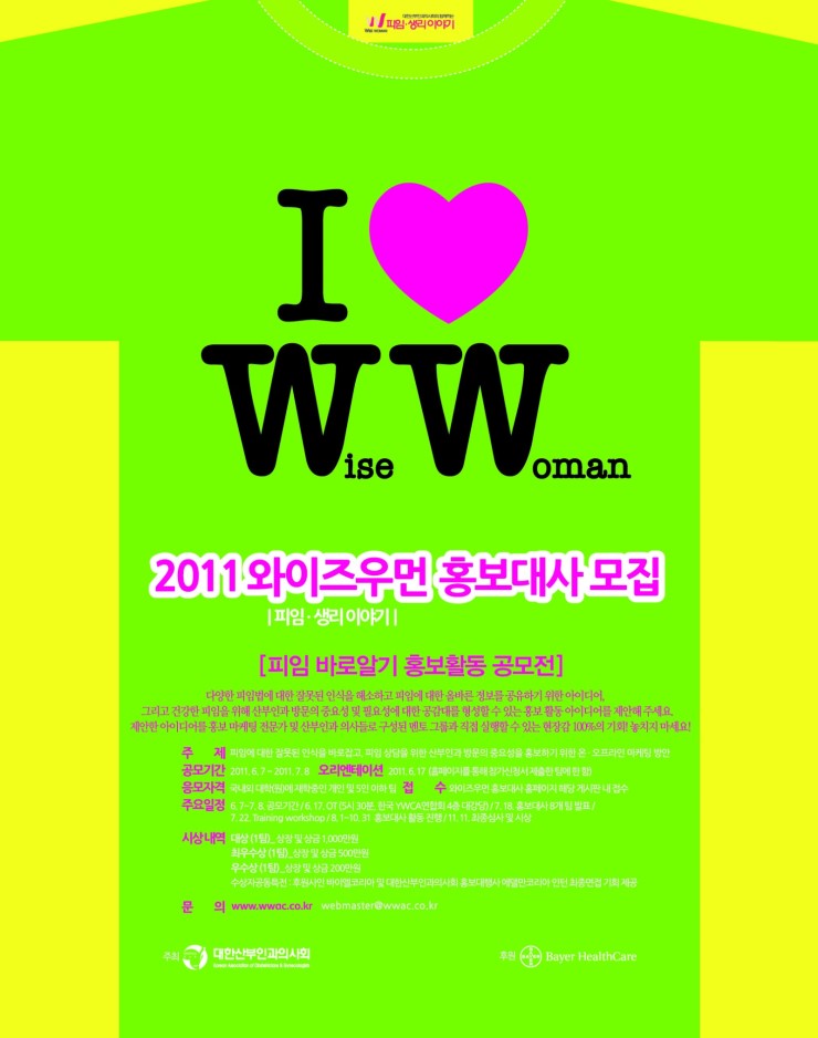 시대의 변화에 따른 올바른 ‘성’에 대한 이해를 해야 될 것입니다. 2011 와이즈우먼 대학생 홍보대사 모집 ‘피임 바로 알기 홍보활동 공모전’ 참여를 통해서, 여러분의 신체건강은 물론, 정신건강 까지 지키자구요.