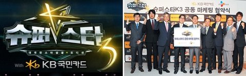 이번 시즌 메인 스폰서는 KB국민카드라고 하네요. 이미 슈퍼스타K3의 홈페이지에는 KB국민카드의 로고가 슈퍼스타K3 제목과 함께 전면에 광고되고 있는데요. 이번 시즌에서는 김성주아나운서가 60초 후에 뵙겠습니다를 외치면 KB의 광고를 볼 수 있게 되는 건가요?