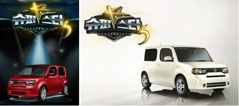 다음 스폰서는 닛산의 큐브인데요. 커피프린스의 키다리아저씨, 이선균의 차로 많이 알려졌었죠. 이번 슈스케3의 우승자에게는 상금5억원 뿐 아니라 바로 닛산의 큐브도 부상으로 주어진다고 하네요. 특히 이번에는 우승자 뿐 아니라 TOP4 안에 든 나머지 3명의 도전자들에게도 큐브를 부상으로 선물한다고 하니… 도전자들 마음이 더 설레겠어요.