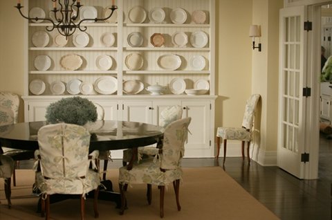 하얀 장식장의 접시들도 흰색과 파스텔 계통의 엷은 색상의
