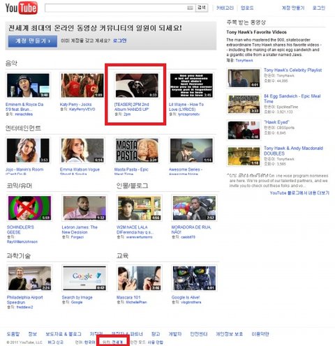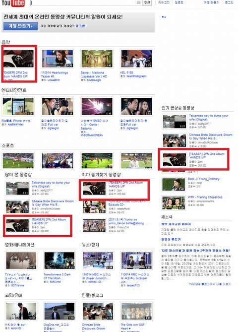 2PM , 전세계 YOUTUBE 메인 페이지 장식