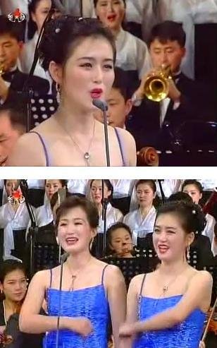 - 김정일의 구애를 거부하고 연인과 동반 투신 기도를 한 후 중상을 입고 실종되어 처형설이 나돌았던 <준마처녀>의 가수 윤혜영의 최근 생존한 모습이라 추정되는 사진. 김정일의 구애 당시 22세였다는 점을 고려하면 30대 초중반으로 보이는 위 여인의 모습이 투신 이후 곡절끝에 목숨을 건진 윤혜영일 가능성도 있다. 그러나 이 사진은 준마처녀 공연 동영상 일부이지만, 그 진위 여부가 확실히 확인된 바는 없다. 풀 동영상에는 출연 여성들 이름이 모두 등장하는데 윤혜영이란 이름은 없다는 주장도 제기되고 있기 때문이다.