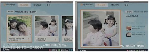 박진영 할아버지는 삼성 스마트 TV의 싸이월드 앱에서 실시간으로 업데이트되는 손자손녀 사진도 감상합니다.