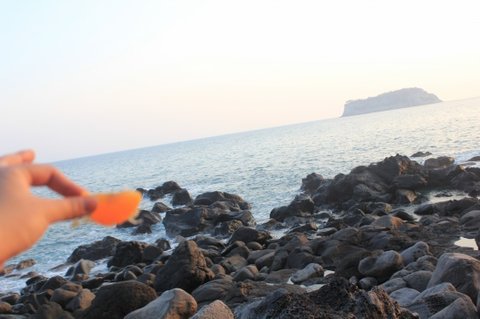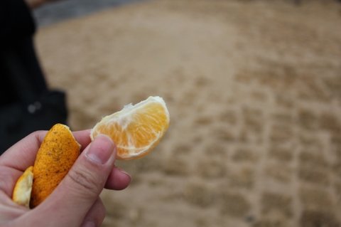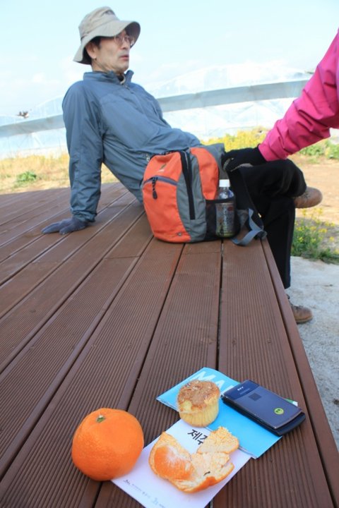 이 돌들의 끝무렵에서 아까전에 아저씨가 주신 귤을 앉아서 맛있게 까먹음 히히
