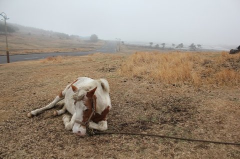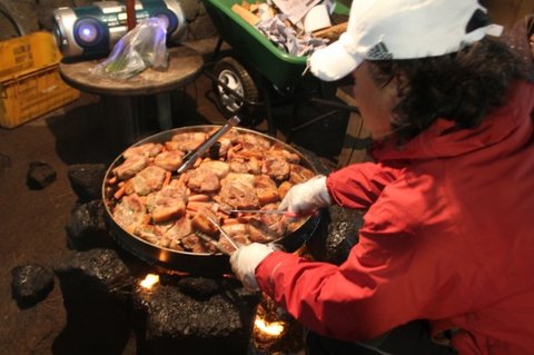 제쥬 흑돼지를 야외에서 부슬부슬 비 맞으며 꾸워먹었음
