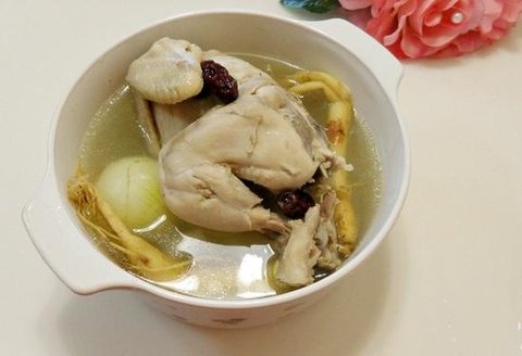 시장에서 양다리를 곱게 꼬아 올린 닭님이랑 인삼 대추 등등 아이템들을 사서