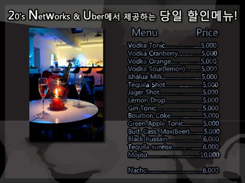 장소 : Social lounge bar UBER @ 홍대