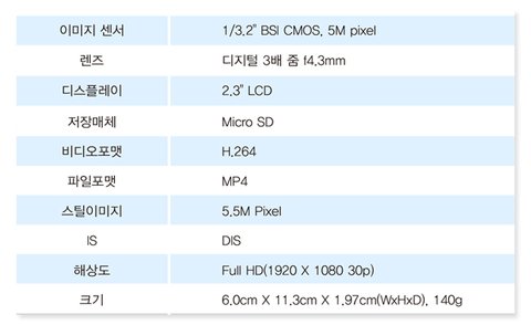 멀티프루프 포켓 캠코더 'HMX-W200' 사양