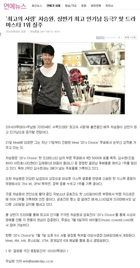 핫드라마스타상 1위로 무한질주중이라는 기사가 떴네요 ㅎㅎㅎ