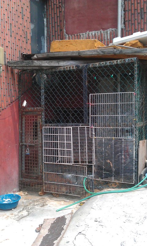 냉장고가 있는데, 그 냉장고 바로 뒤에있는곳이 개 6마리가 갖혀있는 곳이구요