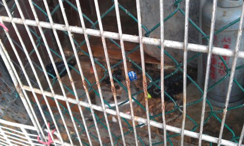 <그림3> 사진에 보이는 저 개는, 매번 물을주는 저를 알아보는지 제가 지나갈때마다 저렇게 철창에 매달려서 물을 달라고 하고 있습니다.