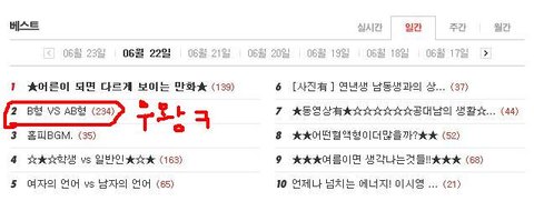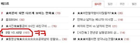 난 B형 vs AB 형 쓴
