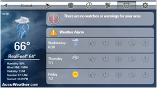 AccuWeather Internet@TV 위젯만 있으면 전 세계 어느 곳이든 현지 날씨를 확인할 수 있습니다. 현재 날씨, 다음 10일간의 일기 예보 및 다음 10시간 동안의 시간 별 일기예보가 제공됩니다. 선택한 지역에 대한 레이더, 위성을 간단히 보고, 국립 기상국 악천 후 경고(미국) 및 AccuWeather의 WeatherAlarms™를 통해 예상 악천후 상황을 확인할 수 있습니다.