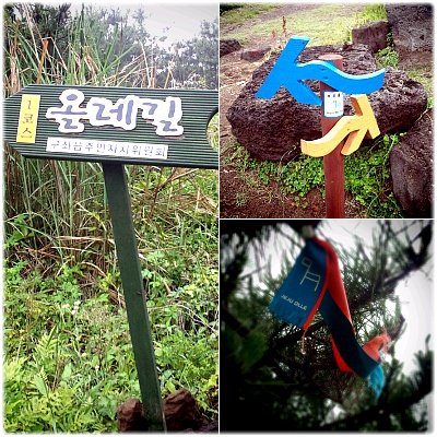ㅠ)나무, 전봇대등 헷갈리는 구간에서는 리본이 달려있고, 담벼락, 돌에 페인트로 화살표 표시도 있구요. 저기 노란색 화살표는 종점에서 출발점으로 가는 역방향을 가리키고 파란색 화살표는 출발점에서 도착지점으로 향하는 정방향을 가르키고 있답니다.